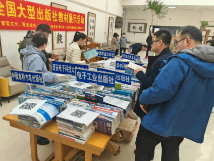 本次书展邀请了高等教育出版社、中国人民大学出版社、机械工业出版社、北京大学出版社、清华大学出版社等国内一流出版社参展,覆盖面广,展出教材6000余册,其中涉及经济学、管理学、理学、工学、农学、文学、历史学、哲学、艺术学、教育学等各学科门类。展出教材除传统类型教材外,更有图文并茂、形式多样的活页式、工作手册式和融媒体等新形态教材。参展教材针对性强,展出的样书与我校各学科专业关联度大。在书展现场,各个出版社的相关负责人均对其特色教材进行了详细介绍,并与我校教师就教材编写、教学资源共享等问题进行了交流。同时,出版社为参加书展活动的教师赠送了样书近200册,填写会后赠书单350余份。